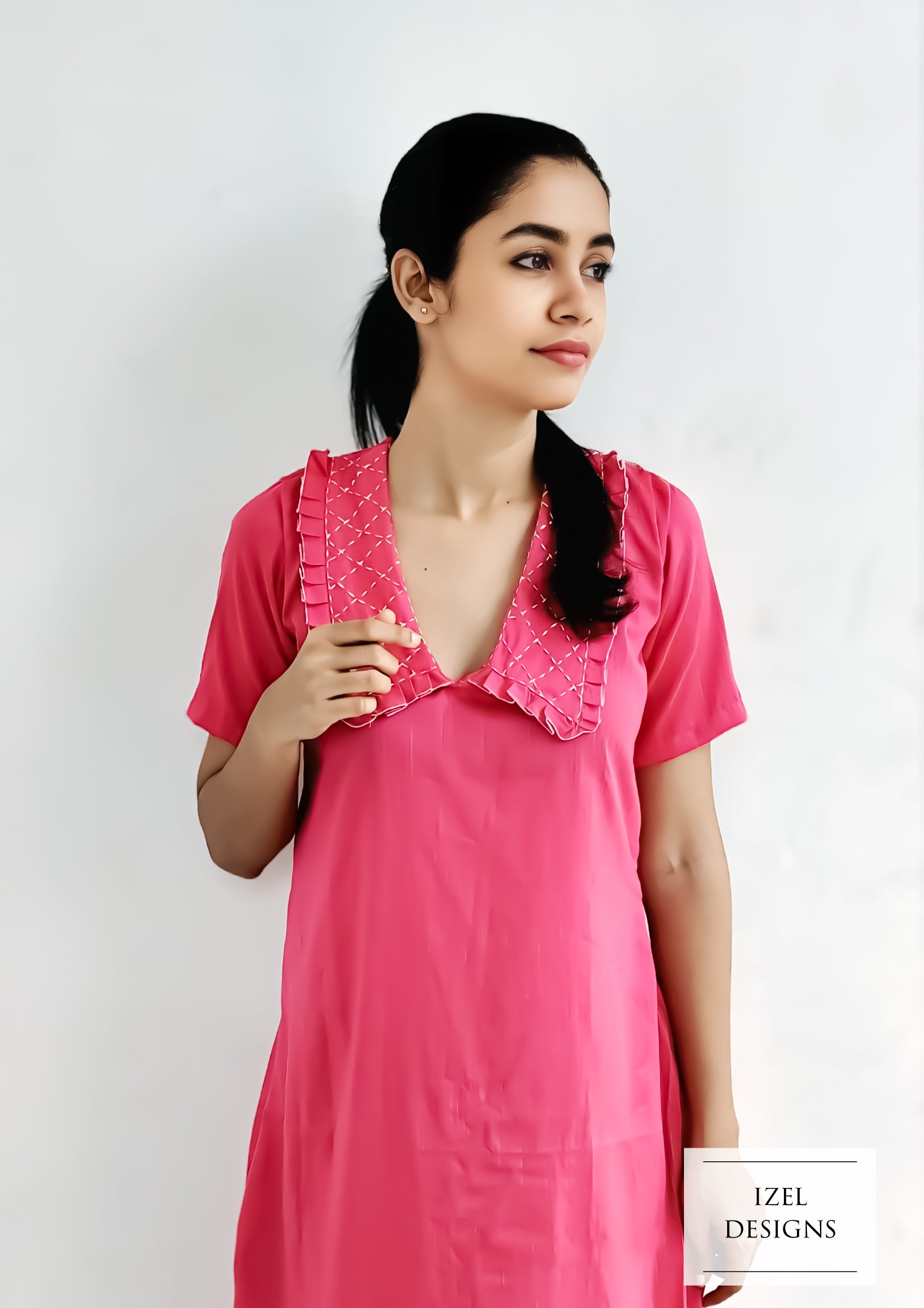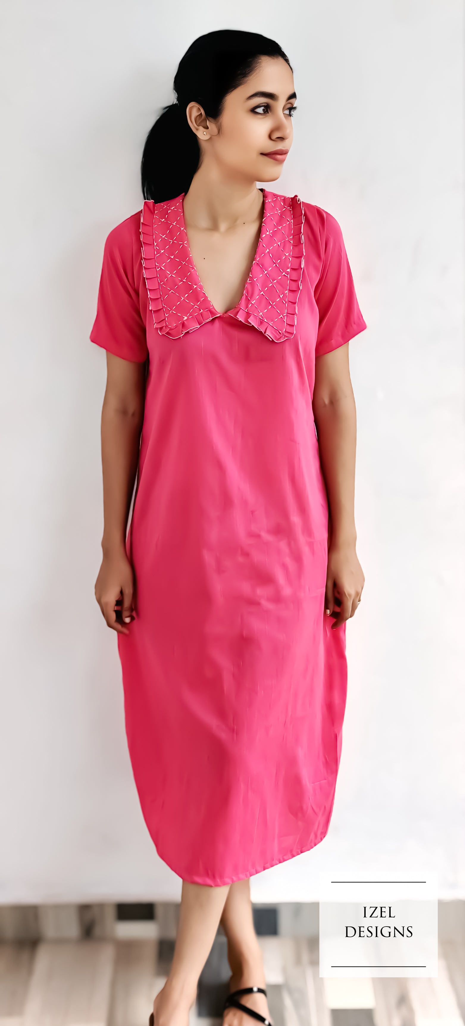 For best results, dry clean only. If needed, gently hand wash in cold water using a mild detergent. Do not soak, wring, or bleach. Lay flat to dry in the shade, and steam or iron on low heat using a protective cloth. As this is a handcrafted piece, please treat it with elegance and care.