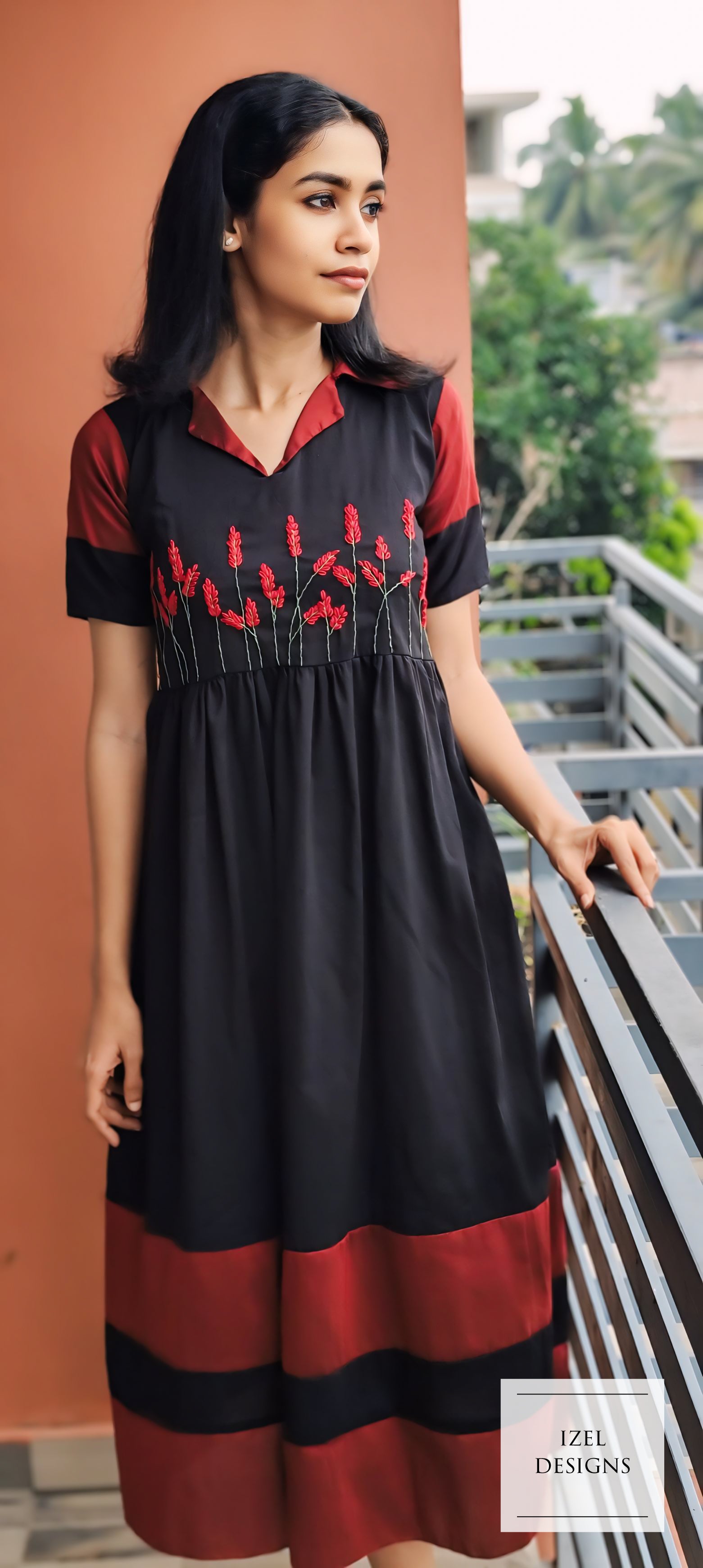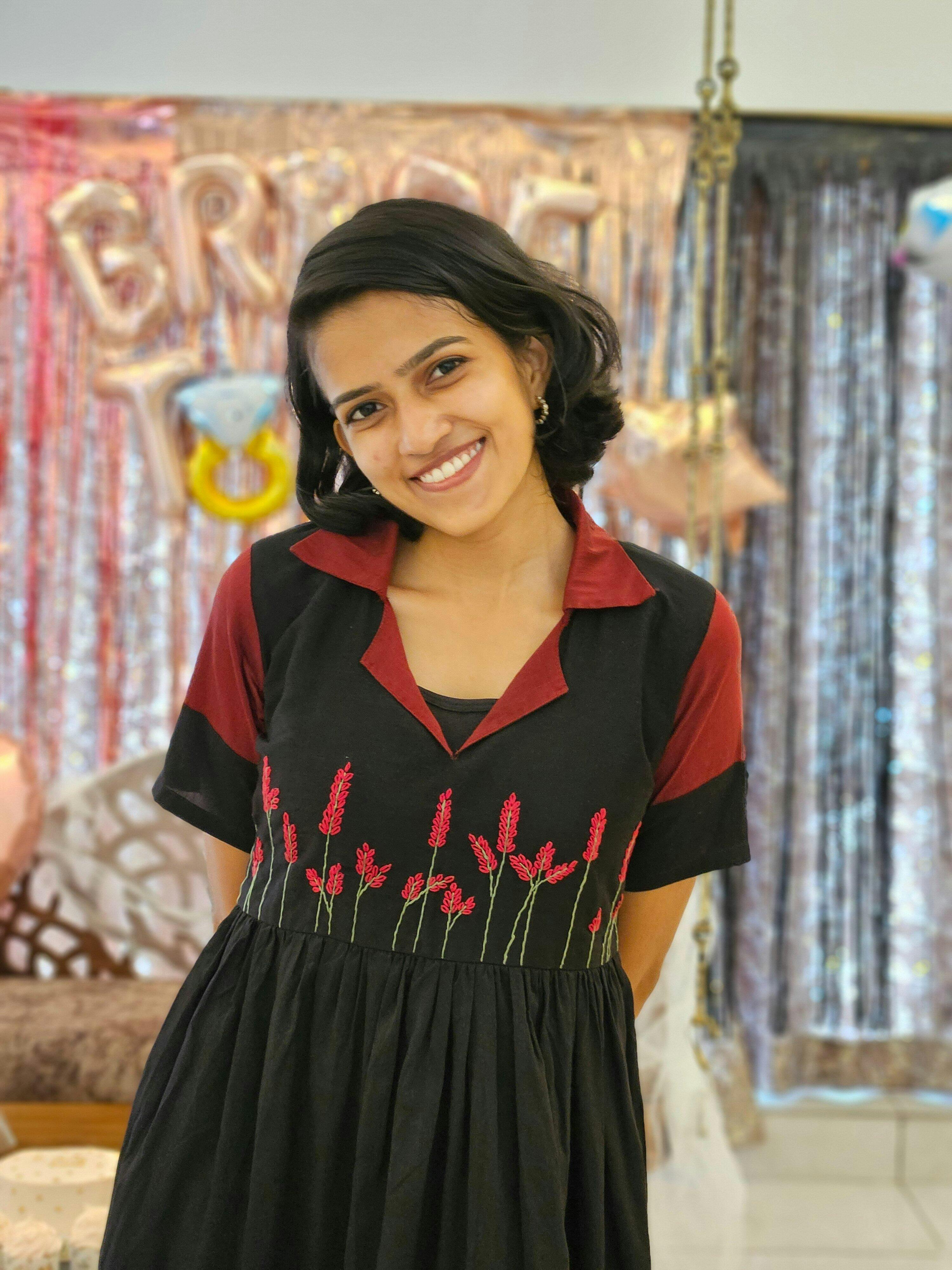 I ordered this beautiful black dress for an event in December 2024, the delivery was on time and the product matched the pictures. I had customised the length to my taste, and that too was done very well. The dress is comfortable and super pretty to look at. The embroidery is the cherry on the cake, it's just wonderfully done. Hoping to buy more from Izel designs in the future.